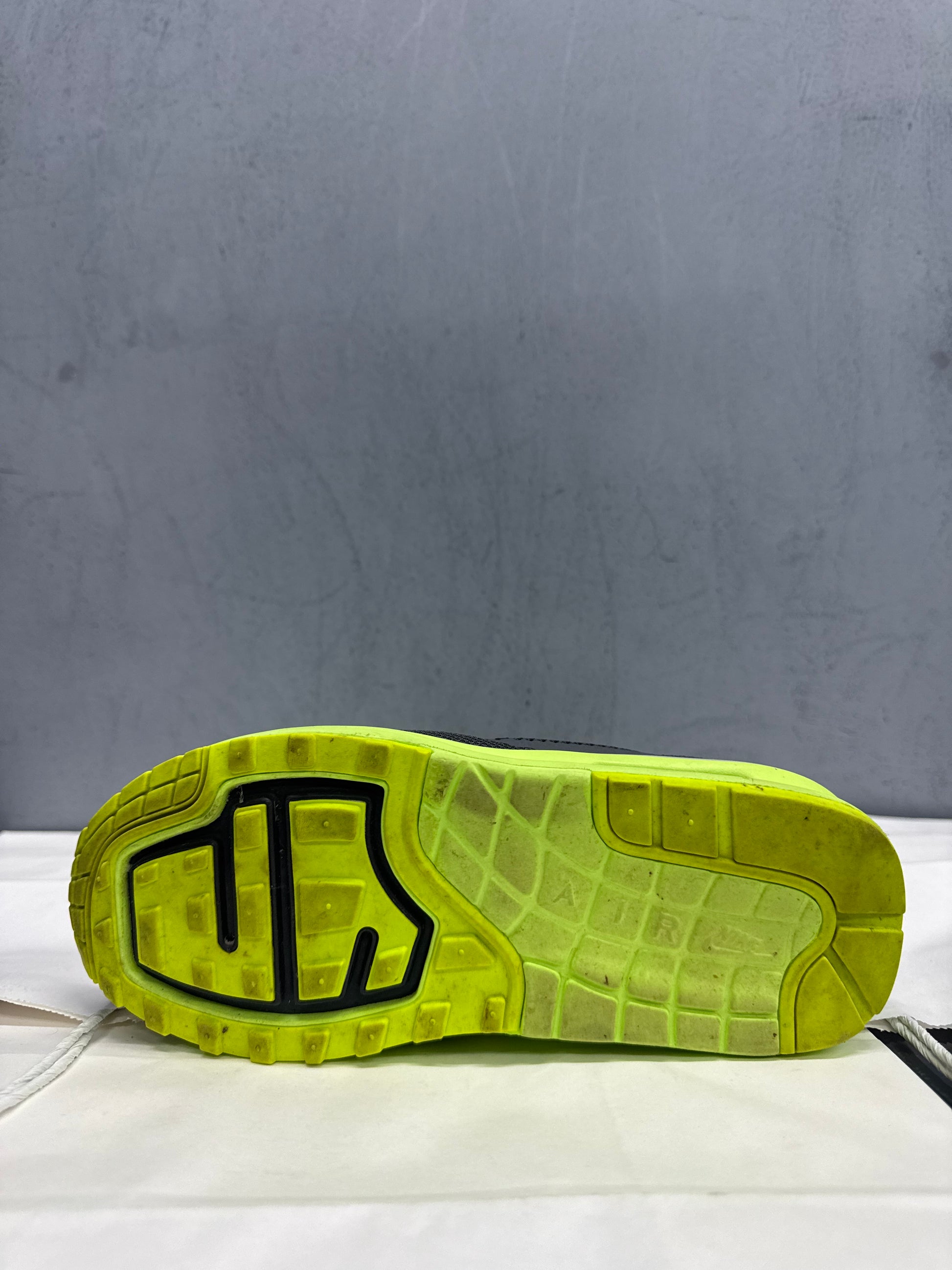 Used Air Max 1 Black Volt Green US Women's 7 - Men's 5.5